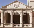 The Coat of Arms of the State on third-floor balcony.