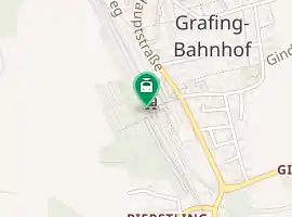 Grafing station (German: Grafing Bahnhof, rather than Bahnhof Grafing, because it serves the town but is not located in it) is a station in the Bavarian town of Grafing and a station of the Munich S-Bahn. There is also the S-Bahn station of Grafing Stadt ("Grafing town") in central Grafing. The station has six platform tracks and is classified by Deutsche Bahn as a category 3 station. It is served daily by about 160 trains, 110 of which are S-Bahn trains. Grafing station is on the Munich–Rosenheim railway and is the beginning of the Grafing–Wasserburg railway to Wasserburg.