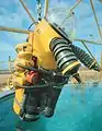In 1976, in association with OSEL of Great Yarmouth, Hawkes designed the one-atmosphere deep diving suit Wasp.[6][7] Two years later, he designed the one-man microsubmersible Mantis, which included remote manipulator arms.[8] A Mantis sub was used in the James Bond film "For Your Eyes Only",[4] which he himself piloted in a large tank at the Pinewood Studios[9]