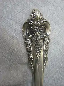 The Grande Baroque flatware is produced by Wallace Silversmiths.