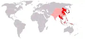 As Japan had about two million soldiers fighting in China, making it by far the largest theatre of operations for Japan, by 1943 the Tōjō cabinet had decided to make peace with China to focus on fighting the Americans.[25] The idea of peace with China had first been raised in early 1943, but Prime Minister Tōjō had encountered fierce resistance with the Japanese elite to giving up any of the Japanese "rights and interests" in China, which were the only conceivable basis for making peace with China.[4] To square this circle about how to make peace with China without surrendering any of the Japanese "rights and interests" in China, it was believed in Tokyo that a major demonstration of Pan-Asianism would lead the Chinese to make peace with Japan, and join the Japanese against their common enemies, the "white devils".[25] Thus, a major theme of the conference was by being allied to the United States and the United Kingdom, Chiang Kai-shek was not a proper Asian as no Asian would ally himself with the "white devils" against other Asians. Weinberg wrote about Japanese propaganda in China that "The Japanese had in effect written off any prospects for propaganda in China by their atrocious conduct in the country", but in the rest of Asia the slogan "Asia for Asians" had much "resonance" as many people in Southeast Asia had no love for the British, the Dutch, the French and the Americans who ruled over them.[26]