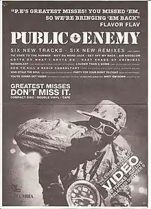 Greatest Misses is a compilation album of an American hip hop band Public Enemy. It was released in 1992. It included previously unreleased outtakes (1-6), remixes of previously released songs (7-12) and a live British TV performance (13).