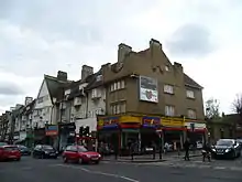Green Lanes runs from Newington Green north along the western edge of Stoke Newington, thereby forming the border between Hackney and Islington, until it reaches Manor House at the eastern edge of Finsbury Park. As it crosses the New River over Green Lanes Bridge, it enters the London Borough of Haringey, it then runs 1.4 miles (2.25 km)[3] through the neighbourhood of Harringay. From the junction with Turnpike Lane the road temporarily changes its name and runs for 1.3 miles (2.1 km)[4] through Wood Green as 'High Road', resuming its Green Lanes identity again after the junction with Lascott's Road. It then continues north for another 2.2 miles (3.5 km)[5] through Palmers Green and Winchmore Hill in the London Borough of Enfield, until it reaches the junction with Ridge Avenue and Green Dragon Lane at Mason's Corner. The northward continuation into Bush Hill at this point is now blocked.