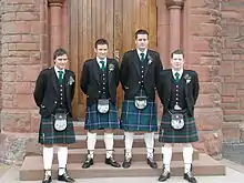 Bridegroom-men formerly had important duties. The men were called bride-knights, and represented a survival of the primitive days of marriage by capture, when a man called his friends in to assist to "lift" or kidnap the bride, or from the need to defend the bride from would-be kidnappers.[2][3][4]