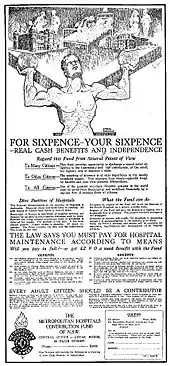 In 1932, following negotiations between the Hospital Saturday Fund (HSF) and a newly created Hospital Commission of New South Wales, a new fund was created to better serve the community. The new fund – called the Metropolitan Hospitals Contribution Fund (MHCF) – was launched on Thursday 16 June 1932, with the Lord Mayor (Ald. S. Walder) presiding.[10][11]