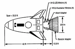 Being much smaller than the Shuttle, the HL-42 could be mounted on top of its launcher, so on the pad and for the first minute of flight a simple launch escape system (LES) could "provide a high-thrust impulse to rapidly distance the HL-42 from a catastrophic booster event" and allow it to glide back to a runway near the launch-pad.[4]:32[lower-alpha 6]