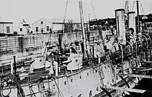 Pioneer was ordered to return to Australia on 8 August 1916, and was paid off on 7 November 1916.[6] Despite being "obsolete and decrepit" she saw more actual combat than any other Australian ship of World War I.[7] Pioneer returned to Garden Island and was used as an accommodation vessel until 1922.[6] She was handed to Cockatoo Island Dockyard for stripping in May 1923, was passed to the control of the Commonwealth Shipping Board in 1924, who then sold the hulk to H. P. Stacey of Sydney, in 1926.[6] The ship was scuttled off Sydney Heads on 18 February 1931.[6]