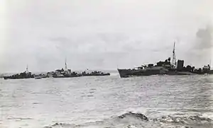 On 26–27 September, Tjerk Hiddes returned to Kilindini for convoy escort duties in the Indian Ocean. (At this time, other vessels of the 7th Flotilla were returning from detached service in Mediterranean.) Escort duties continued through October until her deployment for convoy defence between Sydney and Fremantle, under the control of the United States 7th Fleet.[3] This duty continued until January 1944, but on 4, 11 and 15 December, she made three voyages to evacuate Allied troops and civilians from Timor.[2]
