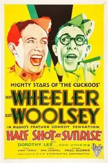 Half Shot at Sunrise is a 1930 American comedy film starring the comedy duo Wheeler & Woolsey and Dorothy Lee. Their fourth film together, it was the second starring vehicle for the two, following the success of The Cuckoos, which had been released earlier in 1930. Directed by Paul Sloane, from a screenplay by Anne Caldwell, James Ashmore Creelman, Ralph Spence, and Fatty Arbuckle, which had been tailored to highlight the comedic talents of Wheeler and Woolsey.