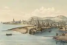 A harbor (American English) or harbour (British English; see spelling differences) (synonym: haven) is a sheltered body of water where ships, boats, and barges can be docked. The term harbor is often used interchangeably with port, which is a man-made facility built for loading and unloading vessels and dropping off and picking up passengers. Ports usually include one or more harbors. Alexandria Port in Egypt is an example of a port with two harbors.