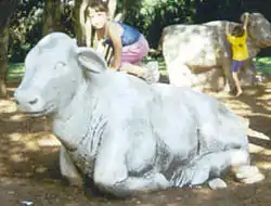 The cows at these sites stand where live cows actually grazed in the recent past. In fact, the models for the sculptures were made in 1980 from cows standing on the hill where the Las Colinas cows now appear to graze. Each cow required four tons of marble.[4] The cows at the Arboretum site are much loved by children.