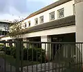 Among his most striking designs are two churches. The First Church of Christ Scientist (1923), where he was a member, employs local materials, adapts some Hawaiian building techniques, and lies athwart cooling tradewinds in a shady tropical landscape.[11] (He employed a similar design in 1922 for the main body of the Albert Spencer Wilcox Building in Lihue, completed in 1924.[12]) The First Chinese Church of Christ (1929) artfully blends bell tower with pagoda, stained glass with colorful glazed tiles, and crosses with traditional Chinese geometric patterns.[13] Similar Chinese motifs can also be seen in the work of other architects that Wood influenced, such as in J. Alvin Shadinger's interior design for the R.N. Linn House (1928).