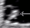 In the first trimester, the heartbeat can be visualized, and the heart rate quantified by obstetric ultrasonography. A study of 32 normal pregnancies showed that a fetal heartbeat was visible at a mean human chorionic gonadotropin (hCG) level of 10,000 UI/l (range 8650-12,200).[17] Obstetric ultrasonography can also use Doppler technique on key vessels such as the umbilical artery to detect abnormal flow.