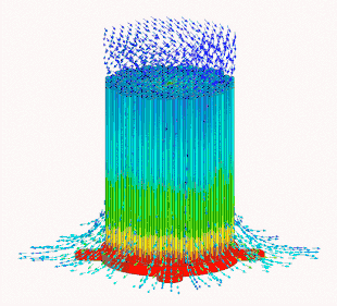 ![]() Pin fin heat sink with thermal profile and free convection flow trajectories predicted using a CFD analysis package |