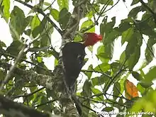 Coenraad Jacob Temminck described the helmeted woodpecker in 1822. Its specific epithet is from the Latin word galea, meaning "helmet". It was reclassified as Hylatomus galeatus by some authorities. Upon sequencing the mitochondrial and nuclear DNA, two studies published in 2015 found that it lay genetically with the latter genus and proposed the name Celeus galeatus.[2][3] The placement of the helmeted woodpecker in the genus Celeus was accepted by the International Ornithologists' Union.[4]