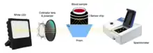 - Hemagglutination blood typing detection:[12] this method for on-site use consists of measuring both blood’s reflectance spectrum alone (non-agglutination) and that of blood mixed with antibody reagents (agglutination) using a waveguide-mode sensor. As a result, some differences in reflectance between the samples are observed and, once antibodies are added, blood types and Rh(D) typing are also possible to distinguish thanks to the waveguide-mode sensor. Besides, what is the most important about this technique is the fact that it is able to detect weak agglutinations, which are almost impossible to detect for human eyes.