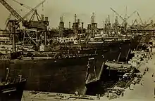 Kaiser fought Hitler far more directly with what he is most famous for: the Kaiser Shipyard in Richmond, California; during World War II adapting production techniques to enable building cargo ships with an average construction time of 45 days. These ships became known as Liberty ships and were later supplemented in the mid-war period by improved, larger and faster Victory ships. He became world-renowned when his teams built a ship in four days.[6][7]