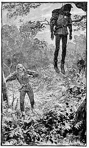 The Black Arrow by Robert Louis Stevenson had first been published as a serial in Young Folks in 1883 and it was a huge success.[6] Cassell & Co. published the story as a book in 1888, and it was such a success that the first printing sold out to the book trade even before it was published.[7] Cassell brought out a new edition with illustrations by Paget in 1891.[4] The illustrations below are from the 1897 edition by Cassell, from scans at the British Library.[8]