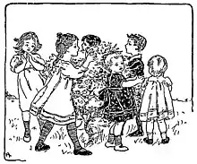 The simple game involves holding hands in a circle and moving around to the first verse, which is alternated with the specific verse, where the players break up to imitate various appropriate actions.[1]