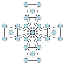 Hierarchical network models are usually derived in an iterative way by replicating the initial cluster of the network according to a certain rule. For instance, consider an initial network of five fully interconnected nodes (N=5). As a next step, create four replicas of this cluster and connect the peripheral nodes of each replica to the central node of the original cluster (N=25). This step can be repeated indefinitely, thereby for any k steps the number of nodes in the system can be derived by N=5k+1.[1]