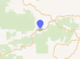 The covered bridge is in Hillsgrove Township on Covered Bridge Road (Township Road 357), which is 0.1 miles (0.16 km) north of Pennsylvania Route 87 via Splash Dam Road (TR 359). The bridge crosses Loyalsock Creek 2.6 miles (4.2 km) northeast and upstream of the unincorporated village of Hillsgrove,[2] and is just south of Elkland Township.[4][5] Its official name on the NRHP is Hillsgrove Covered Bridge.[3][6] It is also known as Rinkers Covered Bridge for the Rinker farm, which is located at the east end of the bridge.[4][7][8] Sullivan County is located in north central Pennsylvania, about 123 miles (198 km) northwest of Philadelphia and 195 miles (314 km) east-northeast of Pittsburgh.[9]