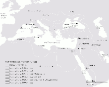 Farther west, foreigners knew some Berbers as Gaetulians (who lived in remote areas), and those Bebers more familiar as the Numidians, and as the Mauri or Maurisi (later the Moors).[37][38][39] These Berber peoples interacted with Phoenicia and Carthage (who also used the name "Libyphoenicians"), and later with Rome. Yet prior to this era of history, sedentary rural Berbers apparently lived in semi-independent farming villages, composed of small tribal units under a local leader.[40] Yet seasonally they might leave to find pasture for their herds and flocks. Modern conjecture is that robust feuding between neighborhood clans kept Berber political organization from rising above the village level, yet the military threat from the city-state of Carthage would inspire Berber villages to join together in order to marshall large-scale armed forces under a strong leader. Social techniques from the nearby polity of Carthage were adopted and modified for Berber use.[16]:33–34 A bilingual (Punic and Berber) urban inscription of the 2nd century BC from Berber Numidia, specifically from the city of Thugga (modern Dougga, Tunisia), indicates a complex city administration, with the Berber title GLD (corresponding to modern Berber Aguellid, or paramount tribal chief) being the ruling municipal office of the city government; this office apparently rotated among the members of leading Berber families.[16]:37–40 Circa 220 BC, in the early light given us by historical accounts, three large kingdoms had arisen among the Berbers of Northwest Africa (west to east): (1) the Mauri (in modern Morocco) under king Baga; (2) the Masaesyli (in northern Algeria) under Syphax who ruled from two capitals, Siga (near modern Oran) and to the east Cirta (modern Constantine); and (3) the Massyli (south of Cirta, west and south of Carthage) ruled by Gala, father of Masinissa. Later Masinissa would receive full honors befitting an important leader from both Roman and Hellenic states.[16]:24–27 Berber ethnic identities were maintained during the long periods of dominance by Carthage and Rome.