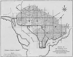 Facsimile of manuscript of Peter Charles L'Enfant's 1791 plan for the federal capital city (U.S. Coast and Geodetic Survey, 1887).[33]