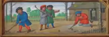 In the 1261 Middle Dutch manuscript of the Flemish poet Jacob van Maerlant's Boeck Merlijn mention is made of a ball game "mit ener coluen" (with a colf/kolf [club]). This is the earliest known mention in the Dutch language of the game of colf/kolf as played in the Low Countries.[5][6]