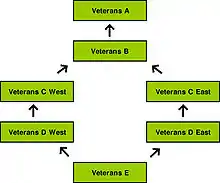 Teams finishing in the bottom two places of each grade after the regular season are relegated to the next lowest grade in that competition. For example, the teams finishing 9th and 10th in VA will be relegated to VB for the next season. Teams being relegated from VB to VC will go to the most appropriate district of VC if possible, with one team going to each district.
