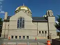 Holy Trinity Greek Orthodox Church was built in 1906 as the first Byzantine-style church in America. The building was finished in 1908. The building takes the shape of a cross, like most traditional Greek Orthodox Churches. The structure is Lowell architect Henry L. Rourke's interpretation of the Hagia Sophia in Constantinople.[4] Inside the church, mosaics decorate the narthex. In the nave, various Byzantine icon murals decorate the walls, along with stained glass.