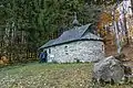 Saint John of Kronstadt and Saint John of Rila Chapel in the Woods[29] | 1979—1998 | It is situated in a remote wooded area of the monastery next to a lake.[30] It is built of weighty rough-hewn cobblestones in the traditional Byzantine style. The roof was made similar to the samples of the North Russian architecture and crowned with a scaly wooden crown with an eight-pointed cross. Consecrated on November 16, 1998.[31] Chapel is not heated and without electricity.[32] |