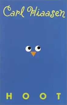 Hoot is a 2002 mystery/suspense novel, recommended for ages 9-12, by Carl Hiaasen.[1] The setting takes place in Florida, where new arrival Roy makes two oddball friends and a bad enemy, and joins an effort to stop construction of a pancake house which would destroy a colony of burrowing owls who live on the site. The book won a Newbery Honor award in 2003.[2]