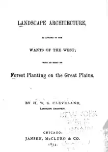 - Cleveland, Horace W.S. 1873. Landscape Architecture as Applied to the Wants of the West. Chicago. Jansen, McClurg & Co.