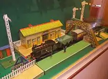 Hornby Railways is a British model railway brand. Its roots date back to 1901 in Liverpool, when founder Frank Hornby received a patent for his Meccano construction toy. The first clockwork train was produced in 1920. In 1938, Hornby launched its first 00 gauge train. In 1964, Hornby and Meccano were bought by their competitor, Tri-ang,[1] and sold when Tri-ang went into receivership. Hornby Railways became independent again in the 1980s, and became listed on the London Stock Exchange, but due to financial troubles reported in June 2017,[2][3] is presently majority owned by turnaround specialist Phoenix Asset Management.[2]