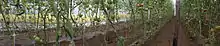 Cultivating the type of determined bushy plants, like eggplant, tomato, chili and peppers, many growers decided to guide/tutor their plants with two "walls" of netting, one on each side of the furrow, therefore creating a growing system where the branches will be supported on their own without any need for manual tutoring. With this system, the lower string of the bottom mesh nearest the soil on one side of the plant is tied gently (leaving about 4–10 cm, 2-4 inches in between the two nets) with the lowest string on the other side (this job is done when the plant is about 40 cm in height, 16 inches). As the plant keeps growing, the distance in between the two walls of net also keeps increasing (30–60 cm) so that each higher branch will be supported by the nearest mesh and be able to reach full vegetative development.