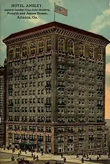 The Hotel Ansley was a hotel that occupied the south side of Williams Street between Forsyth and Fairlie streets in the Fairlie-Poplar district of Downtown Atlanta. It was built in 1913 by Jerome B. Pound of Chattanooga, TN and named for Edwin P. Ansley, developer of the Ansley Park neighborhood; an estimated 5000 guests attended the opening of the $1,000,000 property. The property was originally managed by M.I. and Frank Harrell.[1]