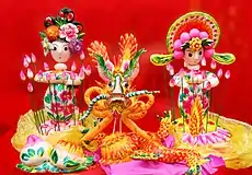 Huamo (simplified Chinese: 花馍; traditional Chinese: 花饃; pinyin: huāmó) is a Chinese method of decorating specially shaped mantou. Huamo are a feature of the folk art of Shanxi and are often prepared for festivals such as Qingming. Wenxi County in Shanxi is particularly renowned for its huamo. Many shapes such as fish, guanmao, birds and dragons are used.[1][2]
