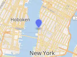 Pier 63 was originally located near 23rd Street, adjacent to Chelsea Piers and Hudson River Park. The site was formerly the location of a Pavonia Ferry terminal that opened in 1869. The ferries traveled to Jersey City, located opposite Manhattan.[62] By the beginning of the 20th century ferries were already aging and deteriorating under heavy use,[63] and in 1942 the terminal itself was demolished.[64] The pier then housed a Baltimore and Ohio Railroad transfer barge. In the late 1980s, boat enthusiast John Krevey converted an old railroad barge on the Hudson River to Pier 63.[65] A restaurant was opened on the pier. The lightship Frying Pan and the fire vessel John J. Harvey were also originally moored to Pier 63,[66] with both listed on the National Register of Historic Places.[67] In 2007, the barge was moved to Pier 66 on 26th Street.[68]