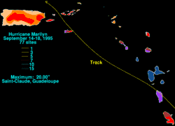 Marilyn was the last of three tropical cyclones to affect the Leeward Islands especially Dominica and Guadeloupe in a short period of time of the 1995 season, the first being Hurricane Iris, late August and the second being Hurricane Luis, ten days before.