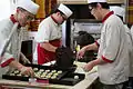 Gyeongju bread is made from a mixture of eggs and wheat flour, with the red bean filling being almost 70% of the pastry. A chrysanthemum would be traditionally imprinted on the top.[2] Gyeongju bread has been designated as an "outstanding regional specialty" (지역명품) by the Korean government.[3][4]