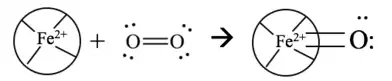 Ligninperoxidase (LiP) serves as the most import enzyme because it is best at breaking down lignin in these organisms. LiP disrupts C-C bonds and C-O bonds within Lignin's three-dimensional structure, causing it to break down. LiP consists of ten alpha helices, two Ca2+ structural ions, as well as a heme group called a tetrapyrrol ring. Oxygen serves an important role in the catalytic cycle of LiP to form a double bond on the Fe2+ ion in the tetrapyrrol ring. Without the presence of diatomic oxygen in the water, this breakdown cannot take place because Ferrin-LiP will not be reduced into Oxyferroheme. Oxygen gas is used to reduce Ferrin-LiP into Oxyferroheme-LiP. Oxyferroheme and veratric alcohol combine to create oxygen radical and Ferri-LiP, which can now be used to degrade lignin.[12] Oxygen radicals cannot be used in the environment, and are harmful in high presence in the environment.[13]
