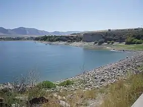 The dam creating Hyrum Reservoir was completed in April, 1935, by the United States Bureau of Reclamation.[5] Prior to that, local settlers had dug a 9 miles (14 km) canal from the Little Bear River to the town of Hyrum to irrigate their crops.[2]