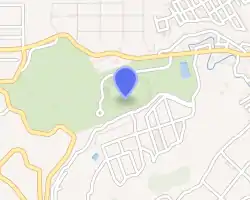 The stadium is located behind a residential area in Shimizu Ward, Shizuoka on the edge of the Nihondaira mountains which divide Shizuoka City. The stadium is surrounded on two sides by green tea fields and due to its elevated position provides panoramic views across Shimizu and Suruga Bay.