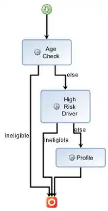 A rule flow is constructed, from a start node to the different rules that must be considered and finishing at the end node.