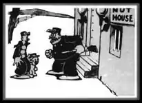 "I Was Killing When Killing Wasn't Cool" was the first of Columbia's comics to conspicuously show the influence of the animated cartoons of Fleischer Studios, particularly the Out of the Inkwell series with Koko the Clown and dark-themed cartoons such as Bimbo's Initiation. The story's dense layout, which fits as many as 32 small panels into each page, creates a strong sense of visual rhythm similar to that of the Fleischer films.[5] Also, its two color palette, which is restricted to copious fluorescent orange and small amounts of brown, recalls the look of the studio's Cinecolor Color Classics shorts of the 1930s.[6] Columbia explicitly acknowledges the Fleischer influence at the end of the story, offering his "sincerest apologies".