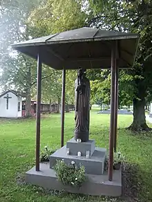 Ilača is the most important Catholic pilgrimage site in the historical region of Syrmia.[5] The Marian Ilača apparitions were reported in 1865, seven years after the famous Lourdes apparitions.[5] Shepard from Ilača Petar Lazin claimed that he saw a water on the middle of the field road although there was no rain, and that once he made a whole the water source started there that haven't stop since that time.[5] At the same night, another villager, young Đuka Ambrušević saw a Virgin Mary with a child in his dream and she told him that it is her water spring, that he need to build a small wall around it so that stock don't drink from it.[5] When he woke up he saw the image from his dream next to his bed.[5] Initially church authorities tried to prevent congregation from pilgrimage.[5] Later it was permitted by progressive bishop Josip Juraj Strossmayer.[6] In 1866 small chapel was built next to the spring, and in 1870 construction of a church started.[5] Ilača became target of pilgrimage for Roman Catholic Croats, Germans, Hungarians as well as for Eastern-rite Catholic Pannonian Rusyns.[5] During the Croatian War of Independence church was destroyed by tanks of Yugoslav People's Army active in the area of self-proclaimed Serbian Autonomous Oblast of SAO Eastern Slavonia, Baranja and Western Syrmia.[5] Once the UNTAES finished its peace mission in the Eastern Slavonia, Baranja and Western Syrmia in 1998 pilgrimage started once again to take place.[5]