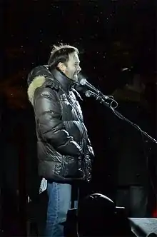In 2012, Ponomarev and fellow MP Dmitry G. Gudkov took a leadership role in street protests against Putin's rule.[6] Following the 4 March presidential election, in which Putin was elected for his third term as president, Ponomarev accused the government of rigging the election, claiming that it should have been close enough for a runoff.[21] In May, Ponomarev criticized Putin's decision to retain Igor Shuvalov in his cabinet despite a corruption scandal.[22] The following month, Ponomarev and Gudkov led a filibuster against a bill by Putin's United Russia party which allowed large fines to be imposed on anti-government protesters; though the filibuster was unsuccessful, the action attracted widespread attention.[6] Later, Ponomarev joined other political leaders in a successful challenge to the legislation before the Constitutional Court, overturning some of its provisions.