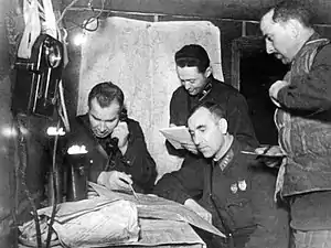 In April 1945, the Corps participated in the Battle of Berlin, doing offensive from the Kyustrin's bridgehead. In the Battle of the Seelow Heights the Corps gave not retreat 9th Army (Wehrmacht) to Berlin, then it participated in the elimination of the enemy force, which was surrounded by the south-east of Berlin. For a breakthrough fortified enemy band and skilful political leadership of the offensive operations Colonel Vlasenko was awarded the Order of Bogdan Khmelnitsky (Soviet Union) 2nd Class.[9]