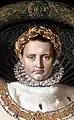 During the Middle Ages the crowns worn by English kings had been described as both closed (or arched) and open designs. This was in contrast with kings of France who always wore an open crown. However, there is academic debate on how often closed crowns were used in England during this period, as the first unequivocal use of the closed crown was by Henry IV of England at his coronation on 13 October 1399.[2][3] However his effigy on his tomb in Canterbury Cathedral wears an open crown, so the link in England between the style of the crown and its representation as that worn by a king and an emperor was not established.[3] The use of a closed crown may have been adopted by the English as a way of distinguishing the English crown from the French crown,[4] but it also had other meanings to some. For example, Henry V of England wore a helmet-crown of the arched type at the Battle of Agincourt which the French knight St. Remy commented was "like the imperial crown".[5]