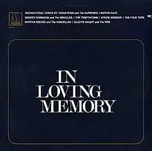 In Loving Memory is a gospel compilation released by Motown Records in September 1968. It is dedicated to the memory of Motown founder Berry Gordy's sister, Mrs. Loucye S. Gordy Wakefield, and features several popular Motown acts, including Diana Ross & the Supremes, The Temptations, The Miracles and Marvin Gaye, performing versions of popular gospel songs and spirituals.
